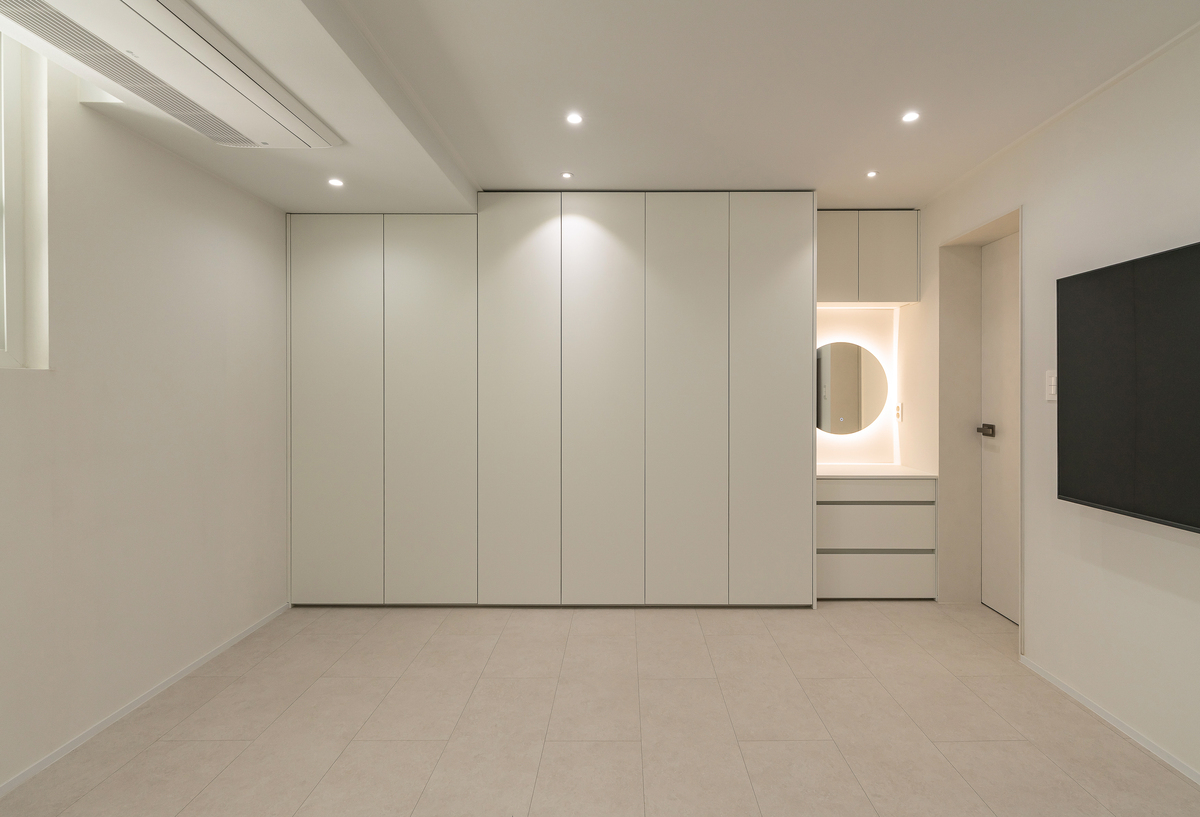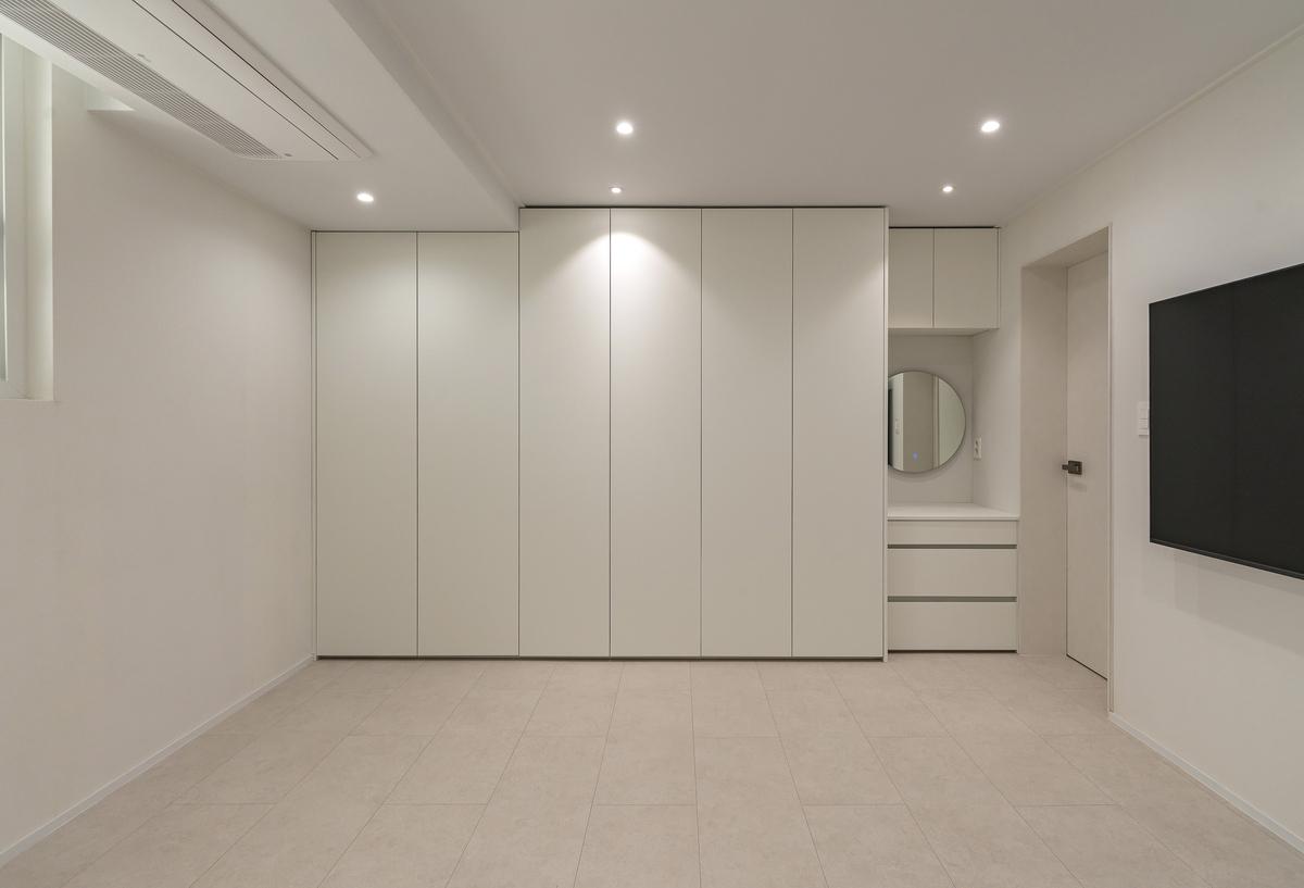 붙박이장은 손잡이가 없는 플랫한 디자인으로 제작해