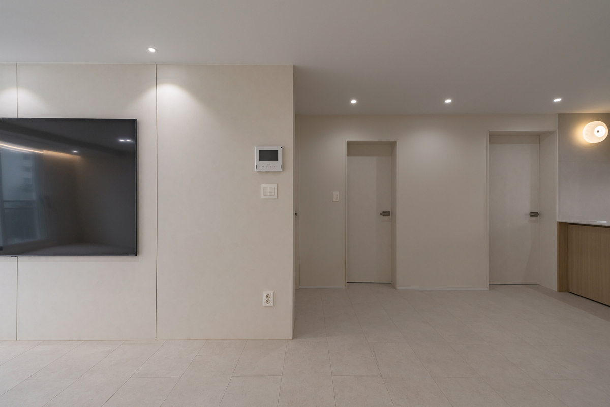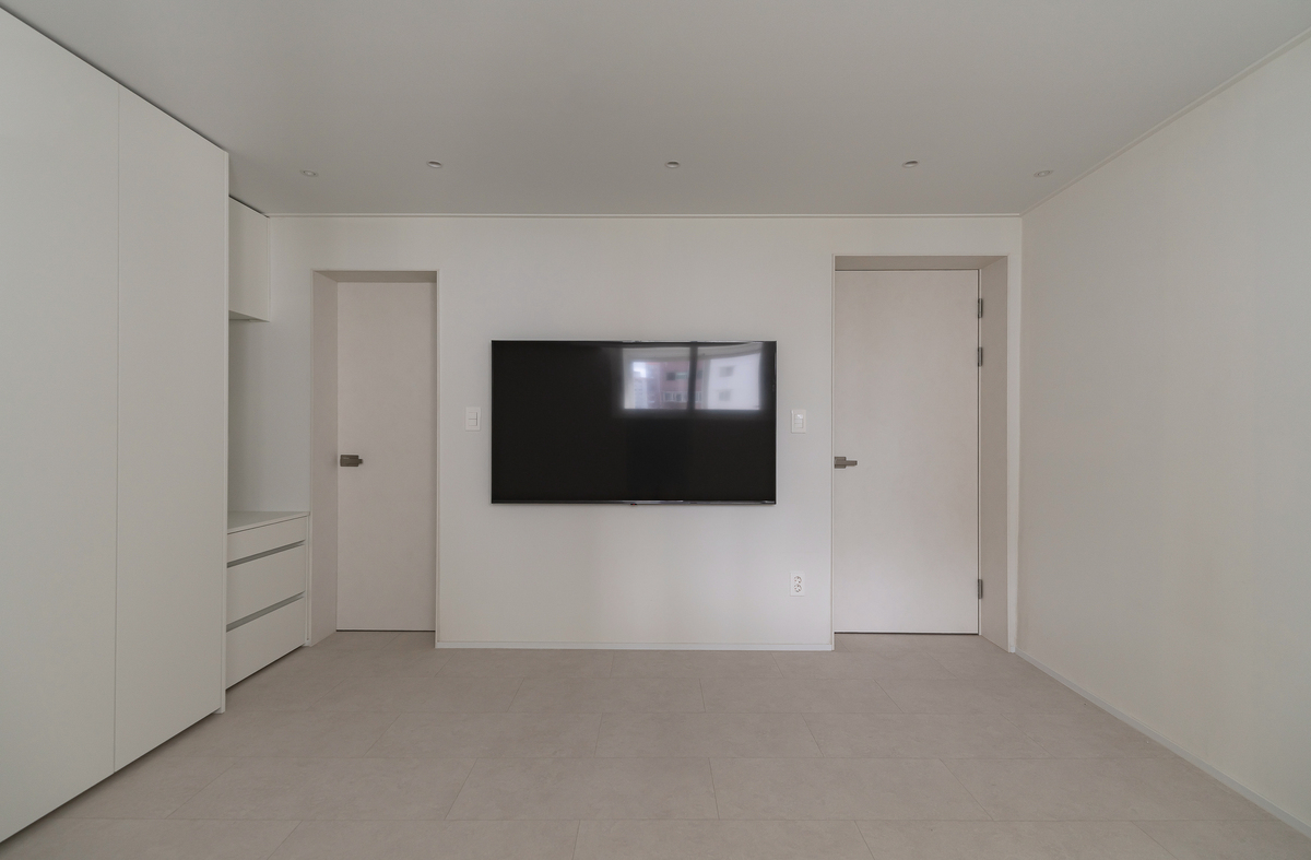 TV 벽은 불필요한 요소를 제거하고 단순하게 구성했으며,